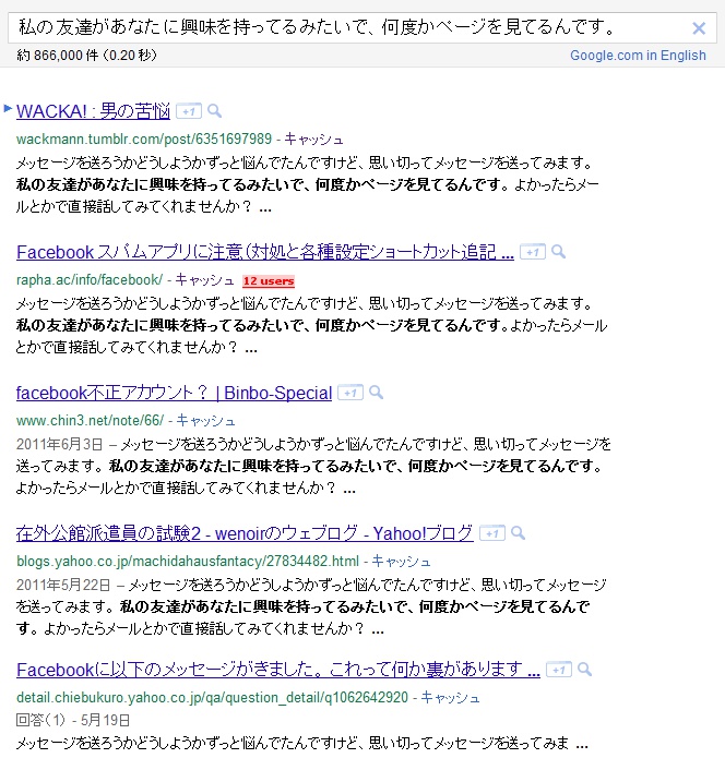 知らない女の子から、Facebook宛にメッセージをいただきました。